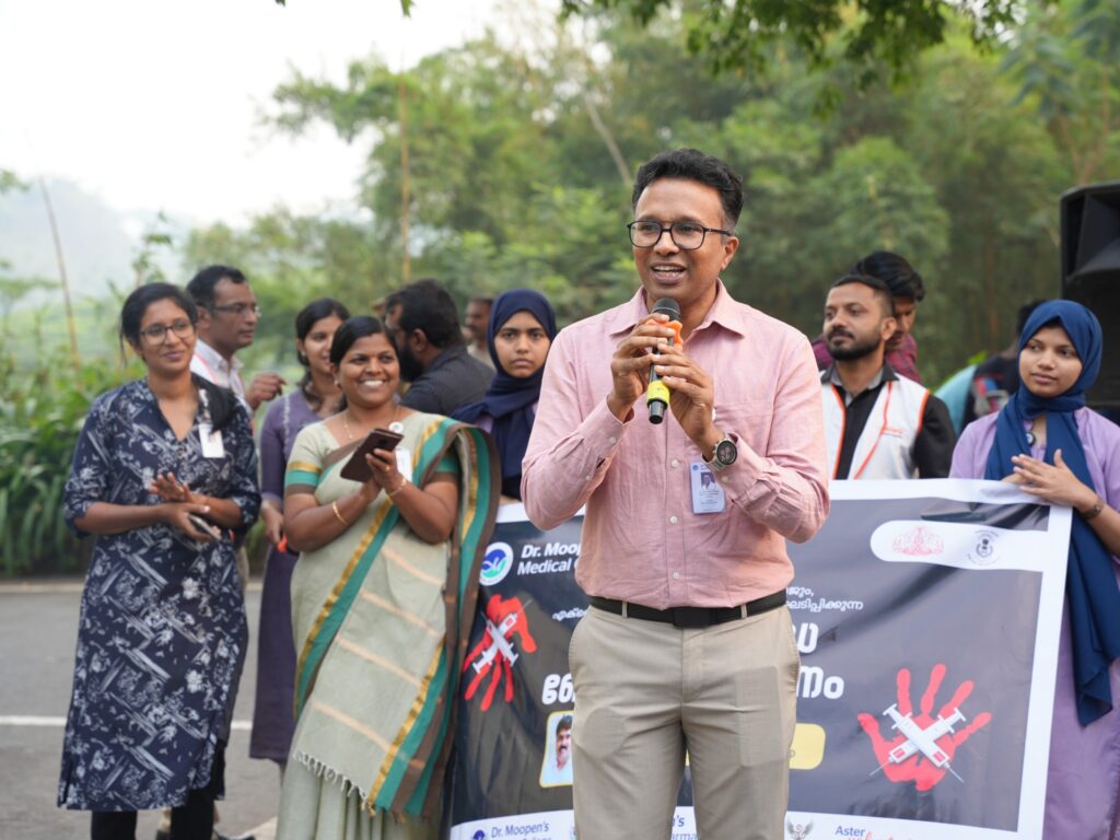 Aster Volunteers of Dr. Moopen’s Medical College, in association with the Kerala Excise Department, Dr. Moopen’s Medical, Nursing and Pharmacy Colleges,Yatna College Union and the NSS Unit, organized an Mega Anti-Drug Campaign at the DMMC campus.