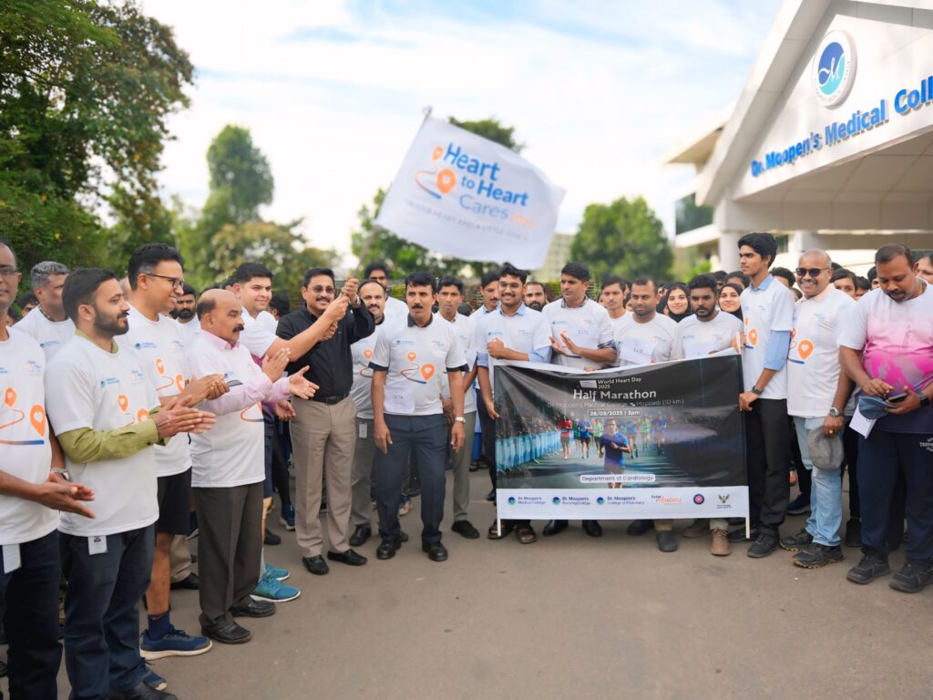 Aster Volunteers of Dr. Moopen’s Medical College proudly launched the World Heart Day – Heart 2 Heart Care 2025 initiative with a District Level Marathon, organized in association with the Department of Cardiology, Dr. Moopen’s Nursing College, Dr. Moopen’s Pharmacy College, NSS Unit, and Yatna MBBS Students Union.