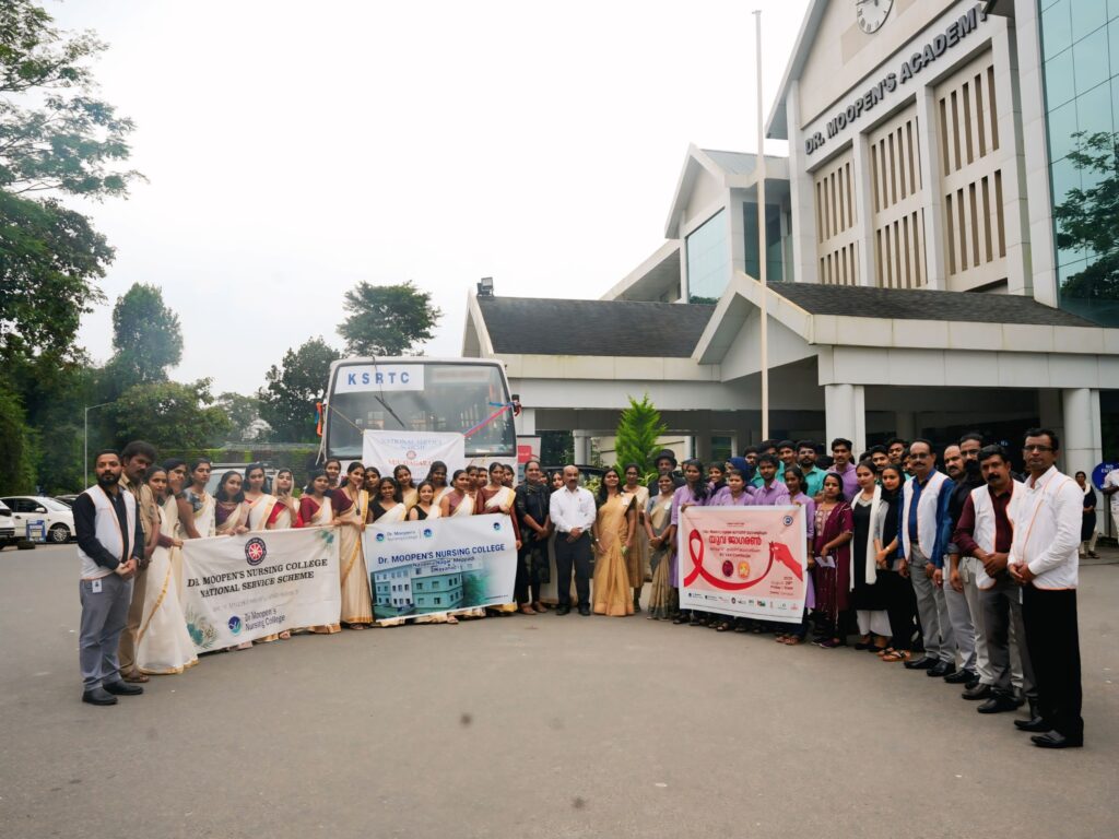 Aster Volunteers of Dr. Moopen’s Medical College, in association with Dr. Moopen’s Nursing College, Dr. Moopen’s Pharmacy College, and the NSS Unit, organized Yuva Jagaran – AIDS/HIV Awareness Rally, IEC Van Campaign Reception, Magic Show, and a Mega Thiruvathira with the support of government agencies under the My India Healthy India campaign. Our beloved Executive Trustee’s wife, Mrs. Raihana Basheer, inaugurated the program and flagged off the Mega Thiruvathira in the presence of Dr. Sara Chandy (Medical Superintendent), Prof. Lida Antony (Principal, Dr. Moopen’s Nursing College), Dr. Cherian Akkarapatty (CMO, Aster Specialty Wing), Mr. Soopy Kallangodan (DGM-Administration), Dr. Shanavas Palliyal (DGM-Operations), Mrs. Vineetha K (Yuva Jagaran District Coordinator), and Mr. Aadi Sathyan (Assistant Professor, Dr. Moopen’s Pharmacy College).